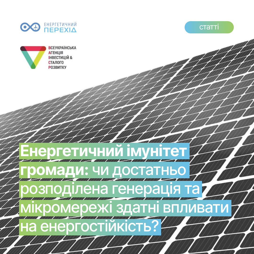 Підсумовуючи усе зазначене, сьогодні, здавалося б, вже не потрібно пояснювати муніципальній владі чи бізнесу про важливість енергетичної стійкості на місцевому рівні. Водночас існуючих механізмів недостатньо саме для інтенсивного розвитку розподіленої генерації та мікромереж у громадах – бракує фінансування та людського капіталу. Для залучення інвестицій та забезпечення сталості рішень необхідний комплексний підхід до енергетичного планування та розвитку проєктів, що включатиме оцінку ризиків та розробку відповідних моделей. При цьому надзвичайно важливо врахувати залежність енергетичного імунітету громад від темпів розвитку «розумних» мереж, підвищення гнучкості енергосистеми та реалізації інших заходів відповідно до Стратегії. Саме тому створення чіткого та сприятливого правового поля для мікромереж є критично важливим для прискорення цього процесу та гарантування надійного енергопостачання в майбутньому.